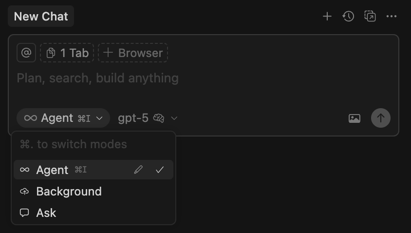 Using the Background Agents, you can run tasks in the background. Agent autonomously explores your codebase, edits multiple files, runs commands, and fixes errors to complete your requests.
