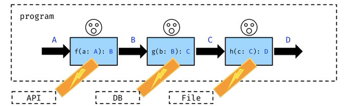 An effect is the thing a monad handles