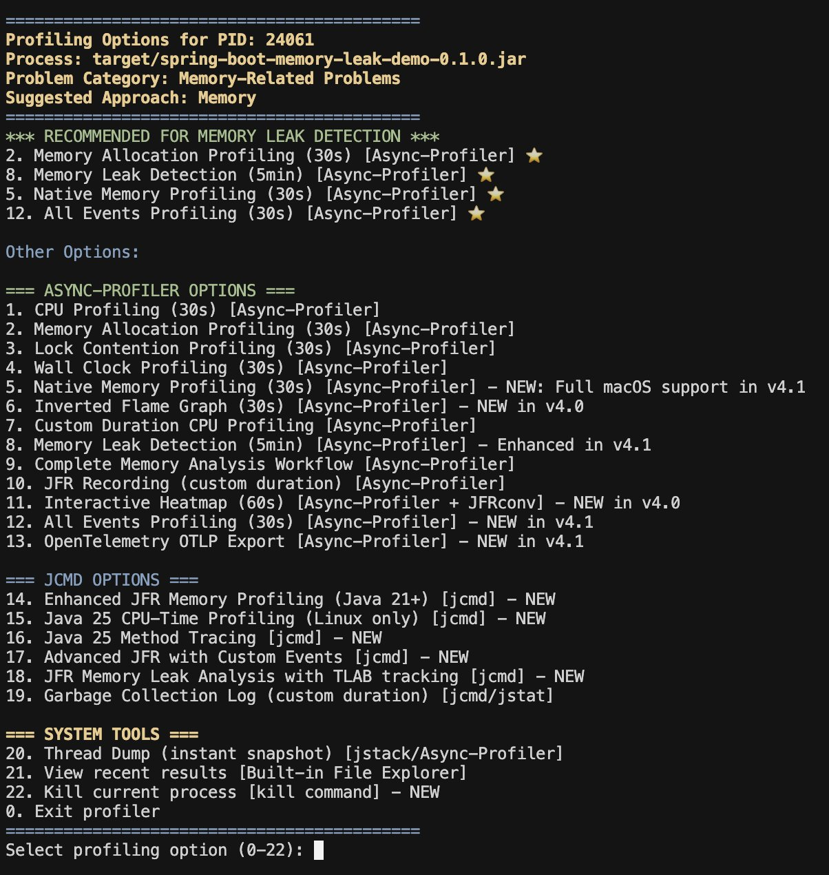 @161-java-profiling-detectto add support forAsync-profiler 4.1and the latestJFR featuresincluded inJava 25and earlier. - Project improvements: