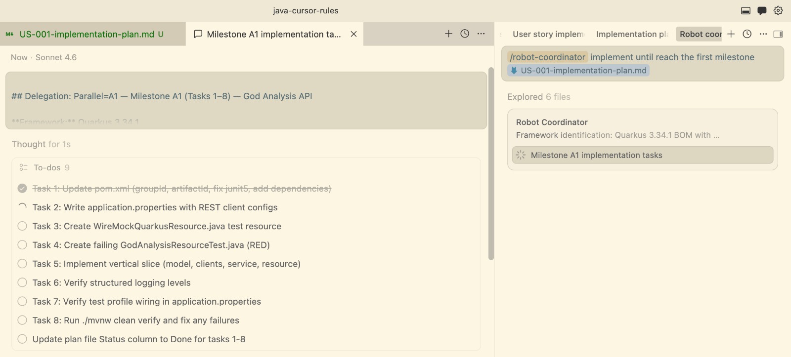 When the plan is revised and you agree with it, you can invoke the new Agent: /robot-coordinator to implement the full plan or the first milestone.